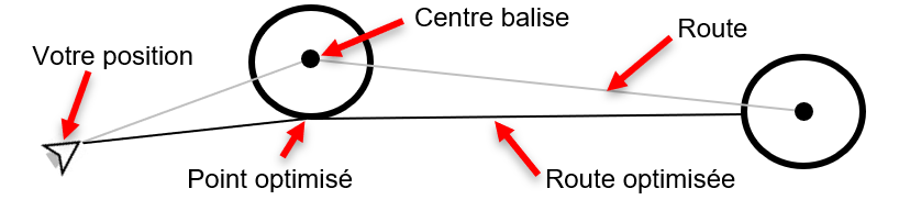 Čas a hodina do další značky / cíle : je to čas, který potřebujete k dosažení značky v optimalizovaném bodě. Tento čas je vypočten na základě vaší rychlosti po zemi a vzdálenosti k tomuto bodu. Stejně tak je možné zjistit čas, kdy byste měli značku dosáhnout.