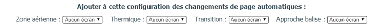 Použít automatické přepínání obrazovek : aby se zabránilo manipulaci s přístrojem během letu, je možné zobrazit požadovanou obrazovku podle situace. Toto nastavení se provádí při konfiguraci obrazovek online: