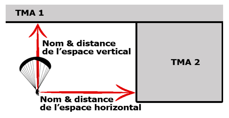 Vzdušný prostor : obrázek níže ukazuje různé položky umisťující vás vzhledem k vzdušnému prostoru. Referenční výška pro výpočty vzdálenosti je založena na vaší tlakové výšce (QNH).