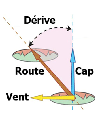 Úhel driftu : je to úhel mezi směrem trasy a směrem kurzu. Nulový úhel driftu znamená, že není žádný vítr. Čím větší je váš úhel driftu, tím silnější boční vítr.