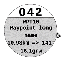 Gleitwert zum Wegpunkt : bezeichnet als „GRW“ für „Glide Ratio Waypoint“, gibt es Ihnen die zum Erreichen des optimierten Punktes (siehe unten) der nächsten Wendemarke erforderliche Gleitleistung an. Die für die Berechnung des Gleits verwendete Höhe ist die Topographie an diesem Punkt und nicht die des Wendemarkenzentrums.