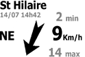 Sobald die Daten zugänglich sind, erhalten Sie je nach Datenverfügbarkeit: den Namen der Station, das Aktualisierungsdatum, die Windrichtung, die minimale, mittlere und maximale Windgeschwindigkeit. Bei der Konfiguration Ihres Bildschirms können Sie wählen, ob das Evolution die Ihnen am nächsten gelegene Station anzeigen oder eine aus einer Liste auswählen soll.