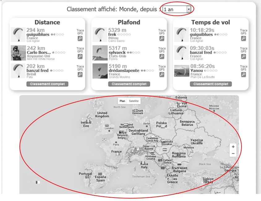 Verfolgen Sie die Entwicklung Ihrer Rangliste auf der Seite Flug, indem Sie auf der Karte navigieren und den Zeitraum ändern. Sehen Sie sich auch die Ranglisten Ihres Fluggeländes an.
