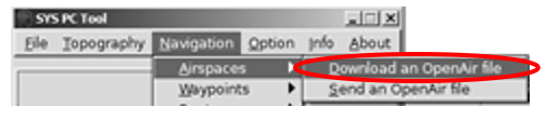 1. En la herramienta SYS PC Tool, haga click en el menú **« Navigation »**, y **« Download an OpenAir file »**. &#x20;